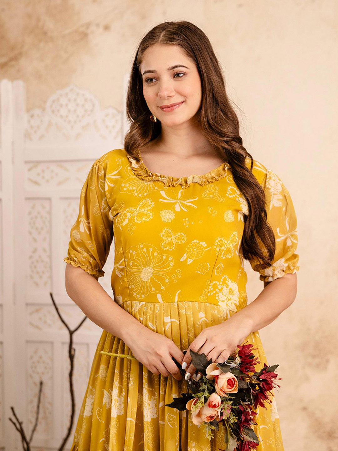 Ethnic Motifs Printed Puff Sleeve Ruffled Maxi Dress