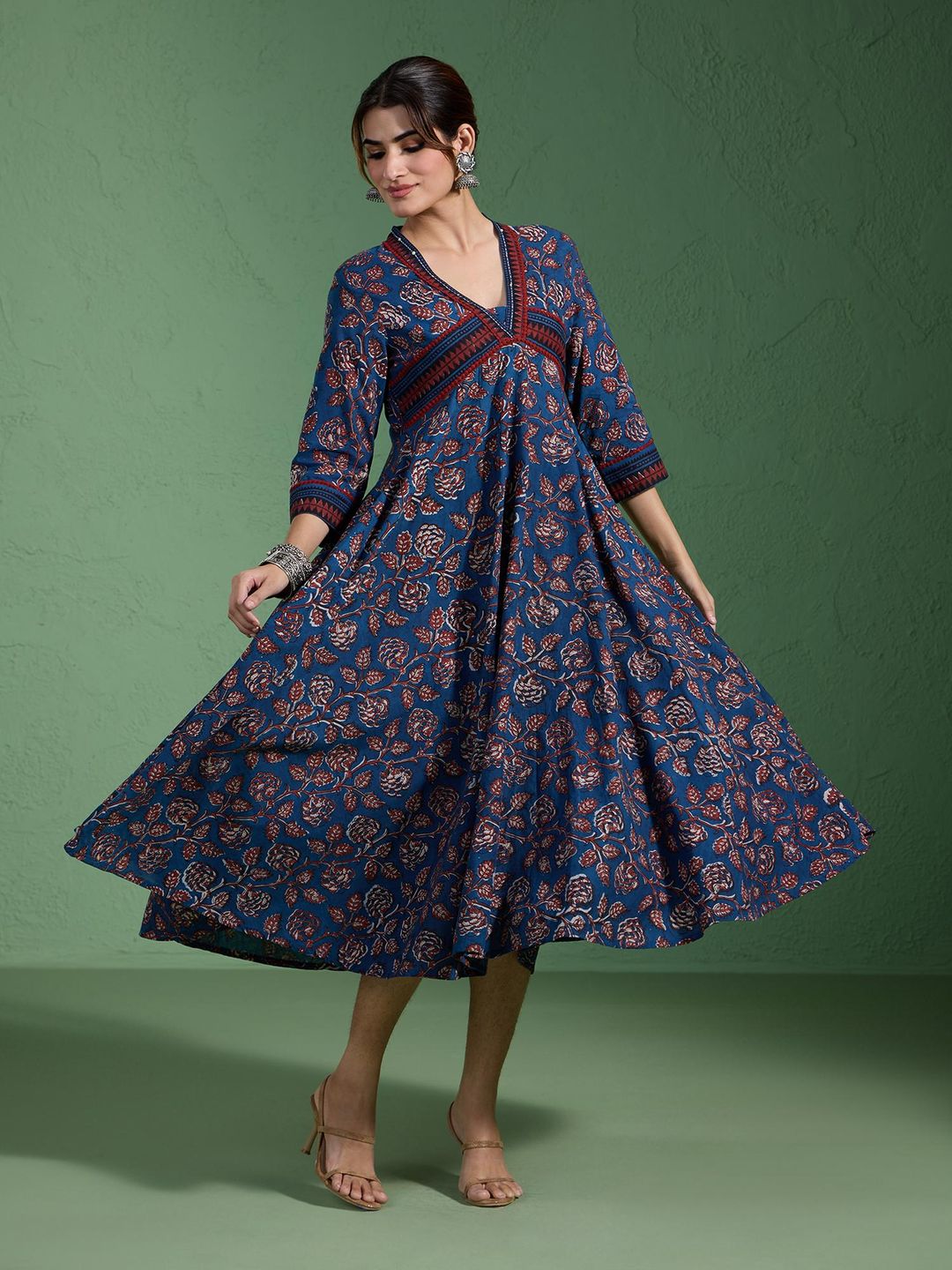 Pure Cotton Authentic Indigo Handblock Printed Alia Cut Flared Dress