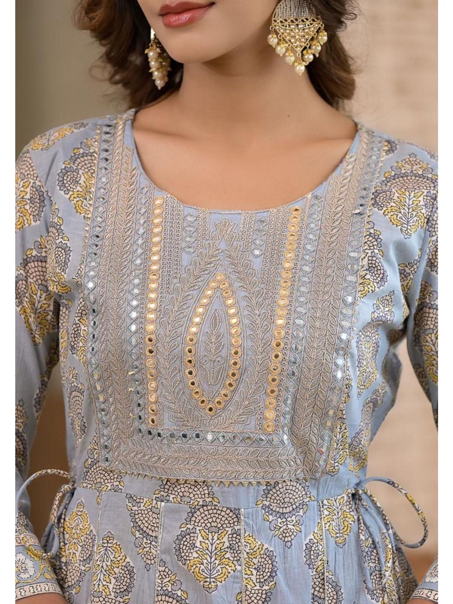 Women Blue Ethnic Motif Mirror Work Embroidered Yoke Maxi Dress