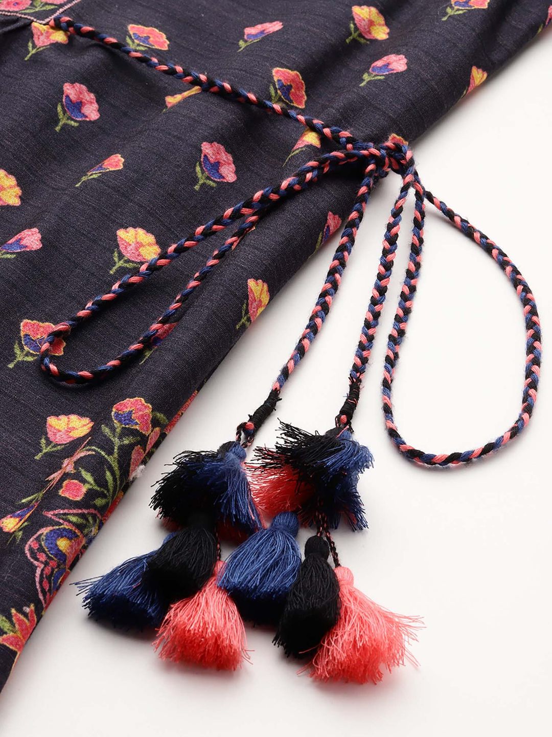 Women Navy Blue Floral Midi Dress