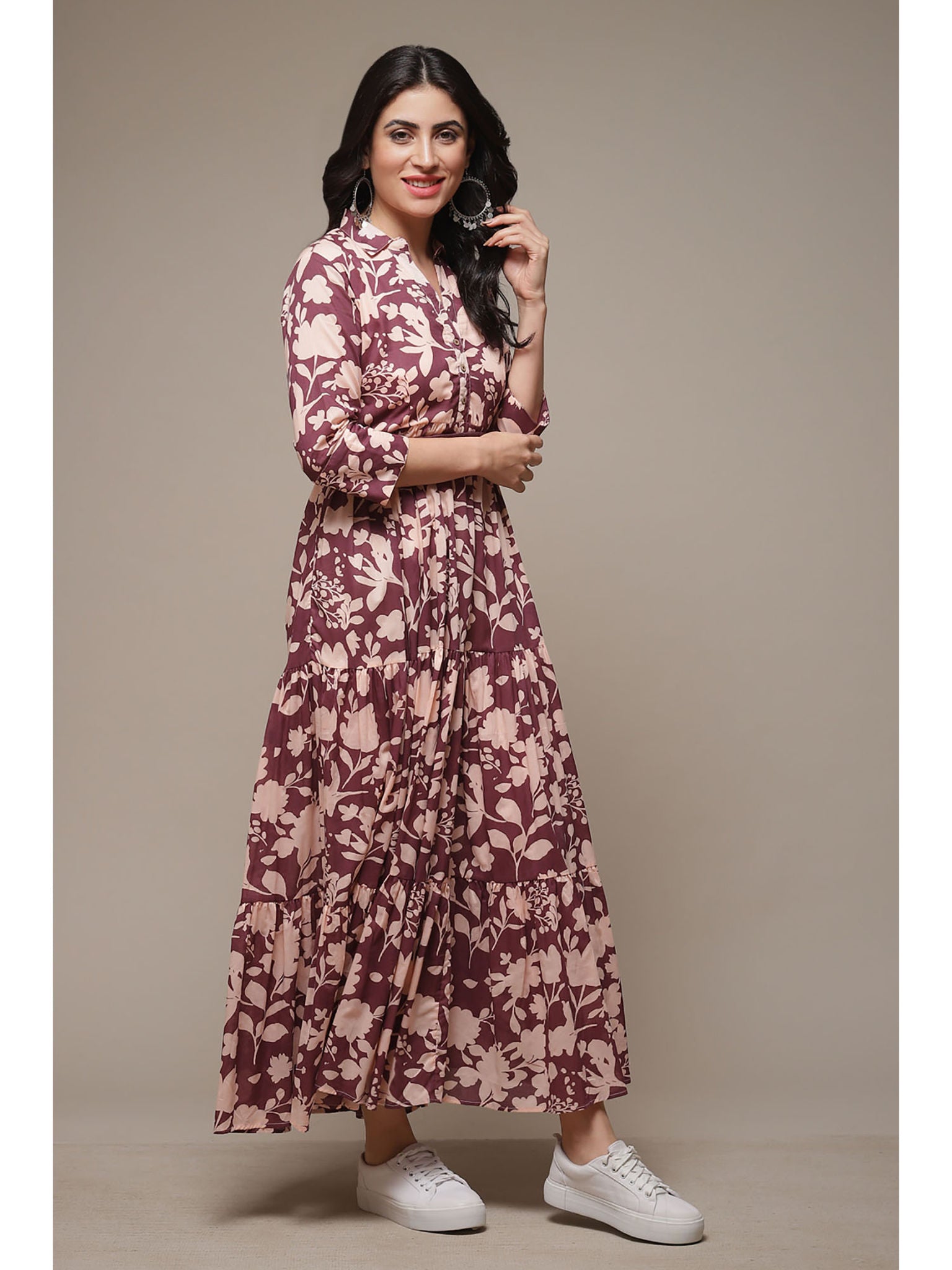 Womens Purple Printed Voile Tired Dress (Set of 2)